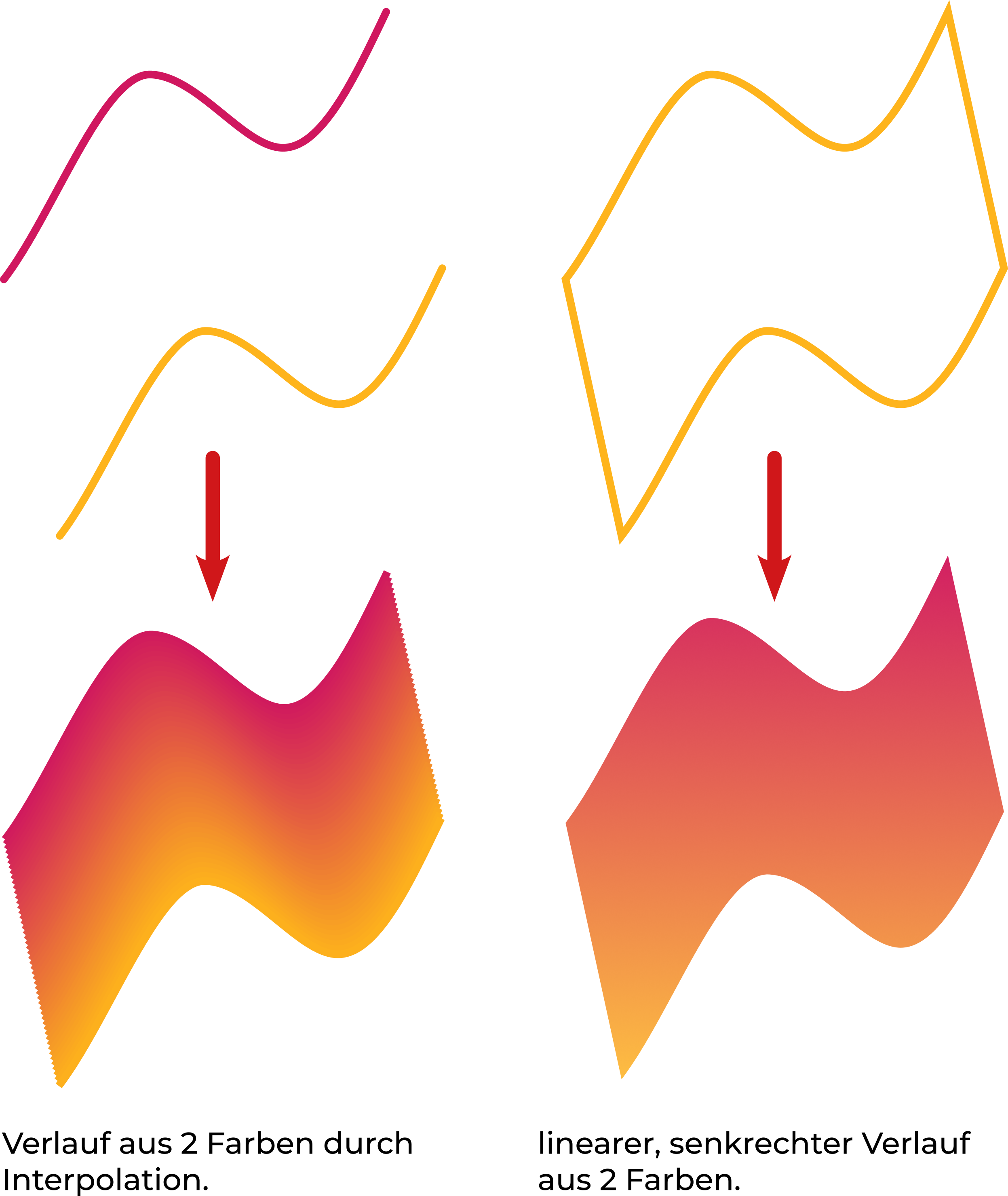 Geschwungene oder komplexe Formen werden durch einen linearen oder radialen Verlauf einfach nie wirklich perfekt berücksichtigt bzw. schön abgebildet. Manchmal habe ich mir durch einen Gitterverlauf einigermaßen geholfen. Aber mit der Interpolation wird das viel schöner, eben einfach weil Form und Farbe eins zu eins harmonieren. Und auch die Farbübergänge haben mehr Kraft und Brillanz gegenüber herkömmlichen Verläufen. Toll! Danke dafür, lieber Stift! Ich bin begeistert!