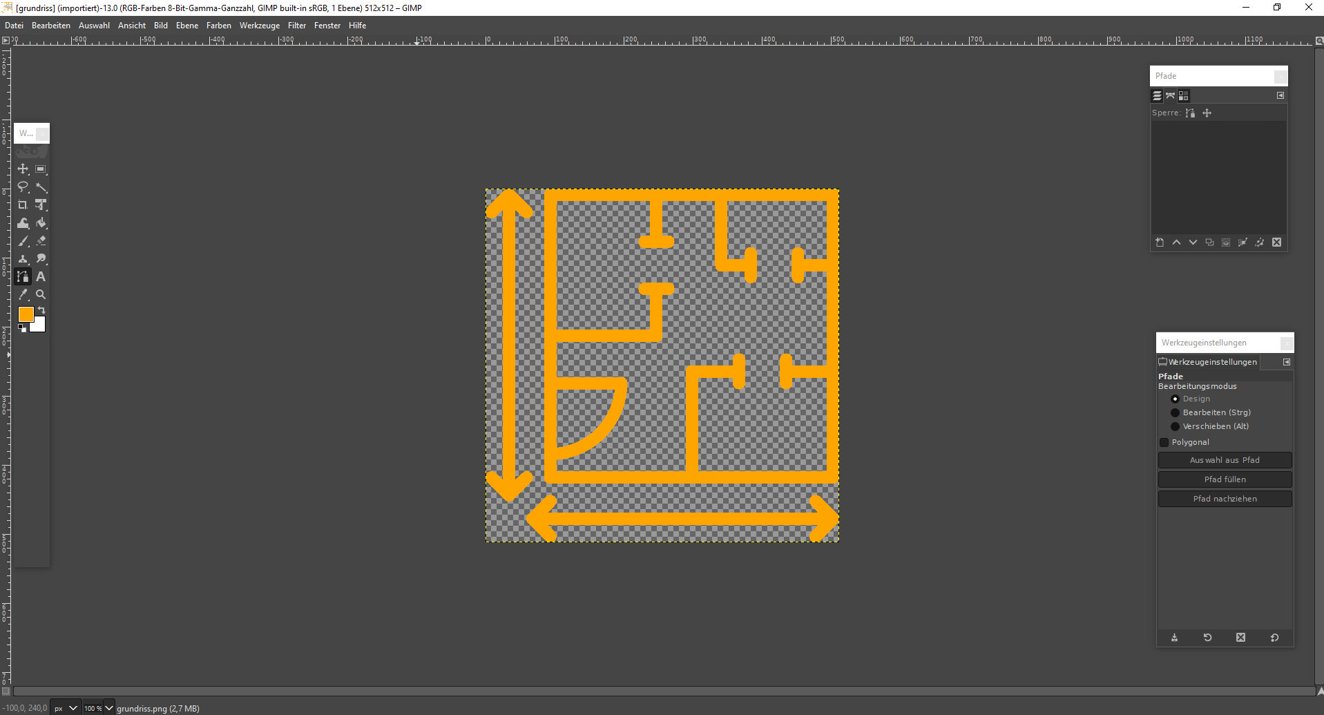 Danach wird der Pfad im Pfaddialog (rechte Maustaste), über Pfad exportieren... als svg-Datei gespeichert.