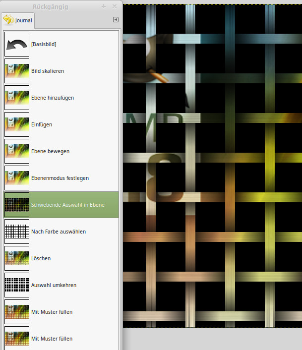 Nach dieser Anleitung https://docs.gimp.org/2.8/de/script-fu-weave.html ganz unten, will ich ein Holzgitter anfertigen.