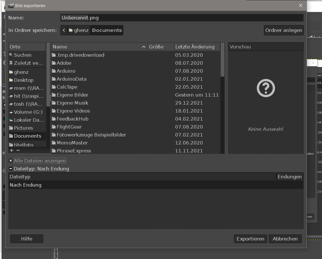 bis vor ein paar Tagen konnte ich beliebig Bilddatein von jpf tif oder png laden und exportieren... das geht leider nciht mehr... und nein ich habe nix gebastelt an Windows 10 oder GIMP 2.10.22 von partha.com oder GIMP 2.10.28 von Gimp.org. Nun habe ich schon beide wieder DeInstalliert und wieder Installiert.. .... und auch die aktuelle Version 2.10.30 von Gimp.org geladen und Installiert... Leider ohne gewünschten Erfolg..