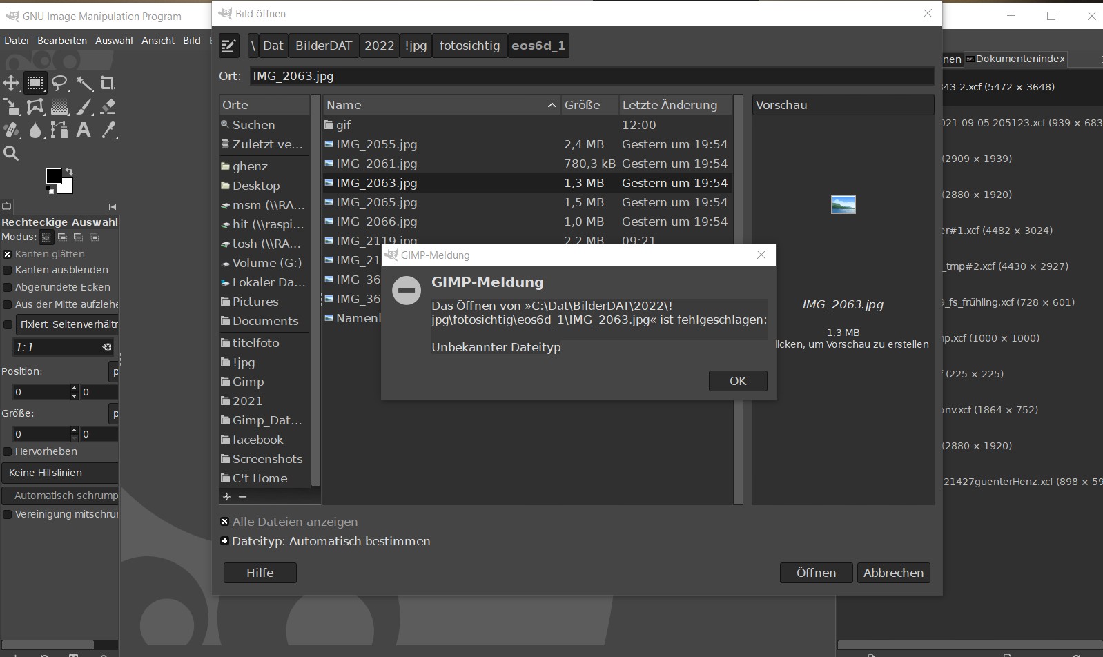 Keine Bildformate möglich jpg/png/tif.... Gimp 2.10