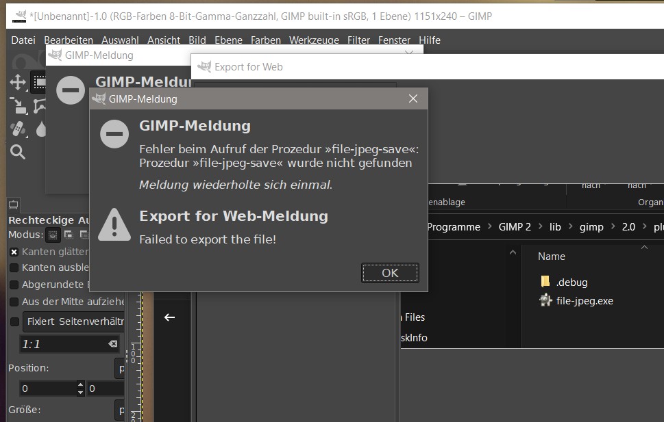 Re: Keine Bildformate möglich jpg/png/tif.... Gimp 2.10