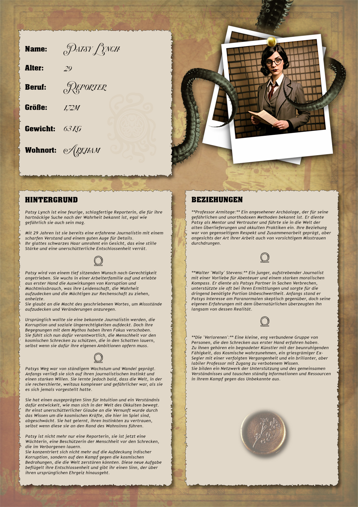Darf ich vorstellen... Patsy Lynch. Freiberufliche Reporterin in Arkham, Massachusetts.