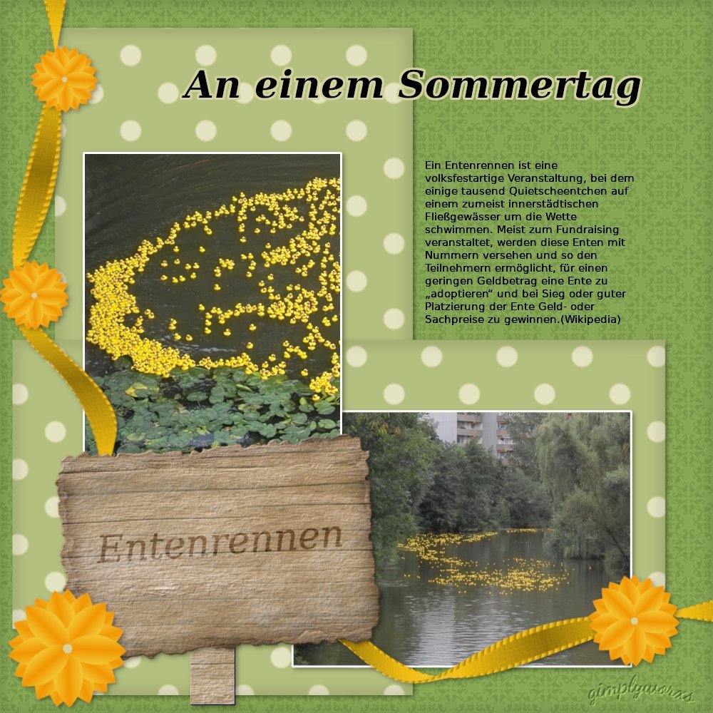 Also beim Scrappen kommen da des Öfteren Sachen auf`s Tapetchen, wo ich nur noch staunen kann. Es geht um dieses gelbe Bändchen. An manchen Stellen etwas breiter, dann schmal zulaufend, und zu guter Letzt auch noch in sich gedreht. Einfach genial. Mit den Sinedot-Bändchen komme ich mittlerweile ganz gut zurecht, aber egal wie ich es anstelle, solch eine Form will mir einfach nicht gelingen. Egal welchen Pfad ich mir erstelle, es geht einfach nicht. Oder war das vielleicht ein gerades Ribbon-Bändchen, das hier so kunstvoll bearbeitet wurde? Fragt sich jetzt nur, wie bastelt man so etwas? Ich wäre total froh über eine Anleitung, das Bändchen ist wundervoll.