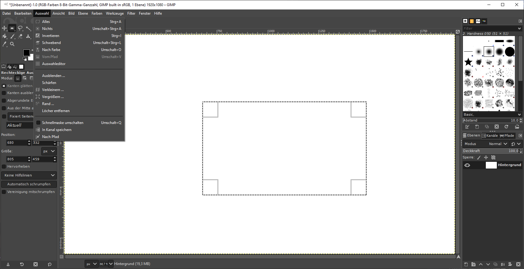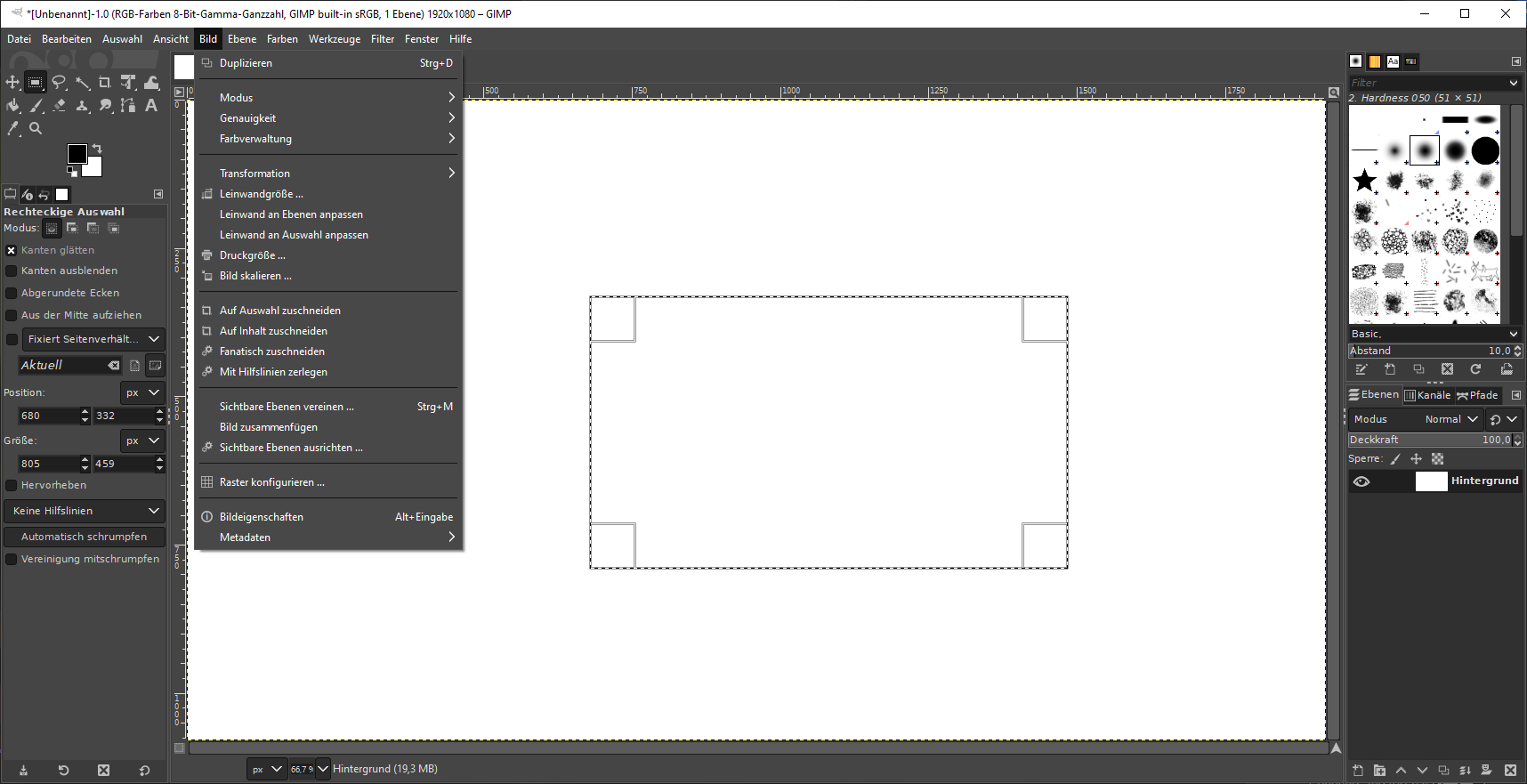 Gimp 2.10.24 und "Hilfslinien aus Auswahl" verschwunden