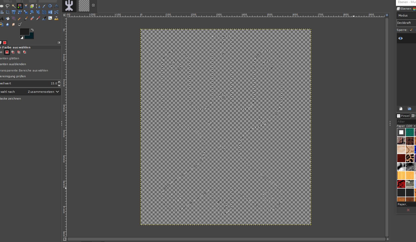 Die Auswahl kannst du nun auf neuer Ebene nachziehen, dann hast du eine Linie, oder aber auch in einen Pfad umwandeln und diesen als svg speichern und wenn nötig in anderen Programmen verwenden.