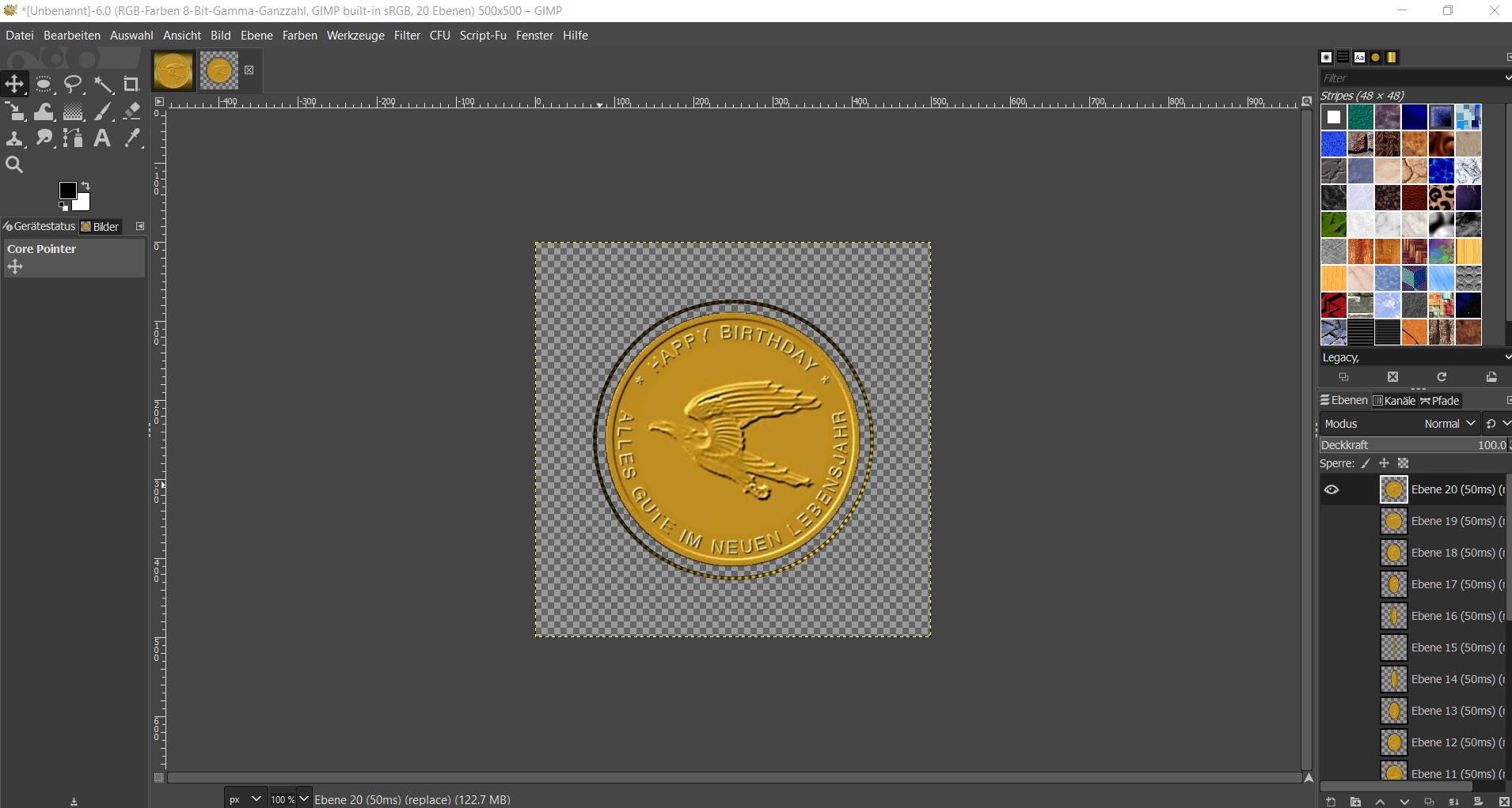 Ich möchte gerne eine sich drehende Münze erstellen. Hierfür habe ich ein wunderbares Tutorial bei euch gefunden und auch ein tolles Skript. Aber...zwischen der Münze und dem Rand ist immer eine Lücke