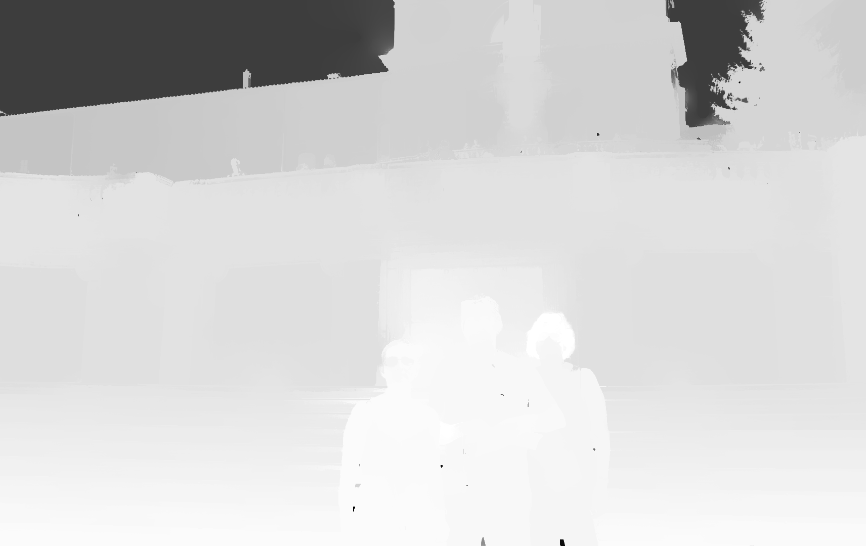 Als Beispiel hänge ich eine depthmap an, man kann dabei die Personen im Vordergrund noch gerade erkennen, andere Details aber kaum.