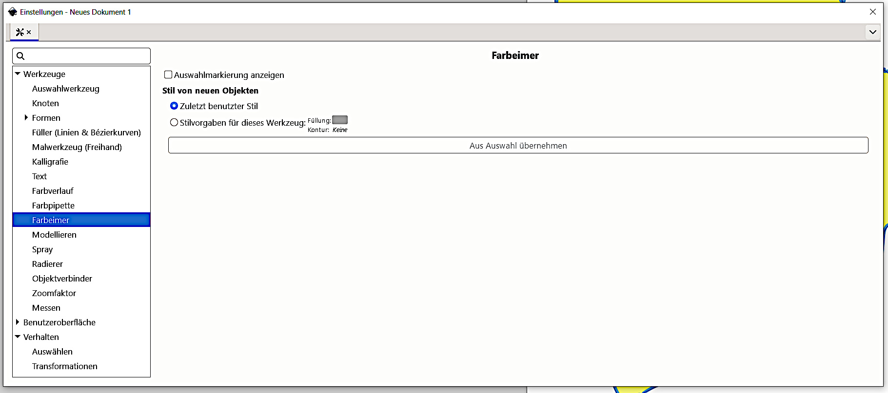 Unter "Datei/Dokumenteinstellungen" kann man dann noch gewisse Einstellung für das gerade aktive Dokument vornehmen, falls man noch irgendwas nachträglich ändern möchte.