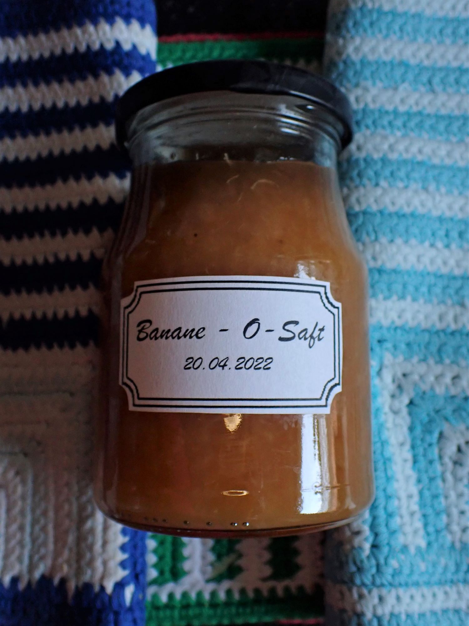Die Etiketten habe ich mit Milch angeklebt, funktioniert prima, und geht auch mit heißem Wasser gut wieder ab.