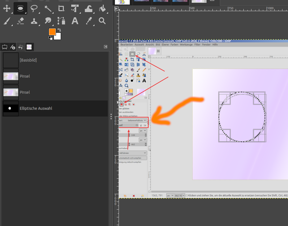 Intuitiv würd' ich auch mit der Ellipsenauswahl :