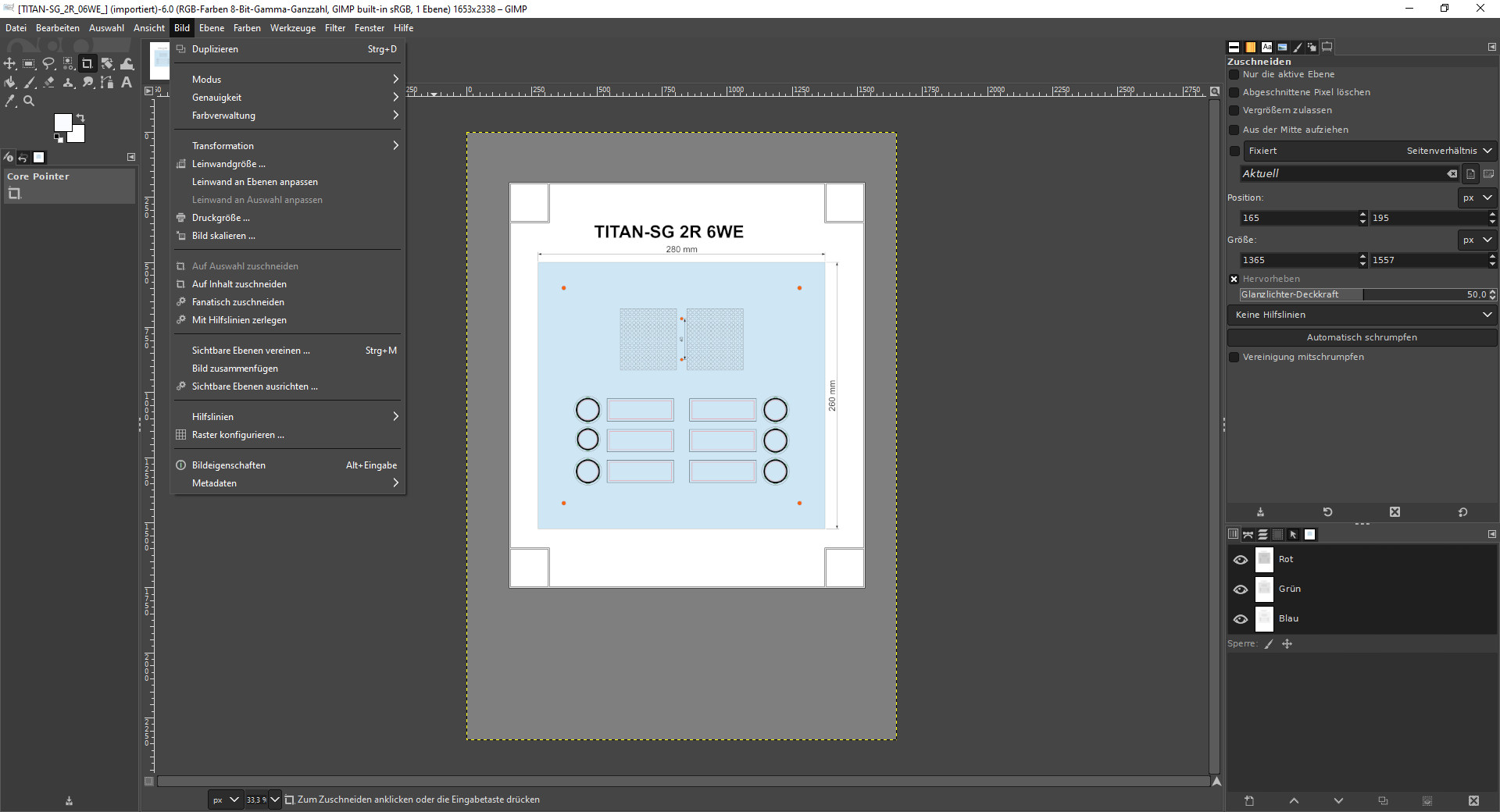 Soweit so gut. Nun möchte ich das erstellte jpg auf Maß beschneiden.
