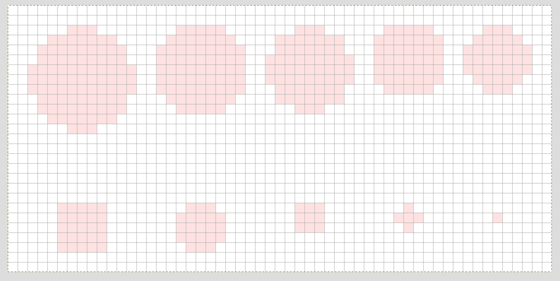Was ich gemacht habe, ist ein Test mit Punkten von 10 Pixel bis runter zu nur 1 Pixel. Tatsächlich werden die Punkte jeweils kleiner. Die Seitenlänge entspricht jedoch, aufgrund der (notwendigen) Symmetrie der jeweiligen Punkte, in jedem zweiten Falle nicht der gewählten Punktgröße. Das fand ich mal ganz interessant.