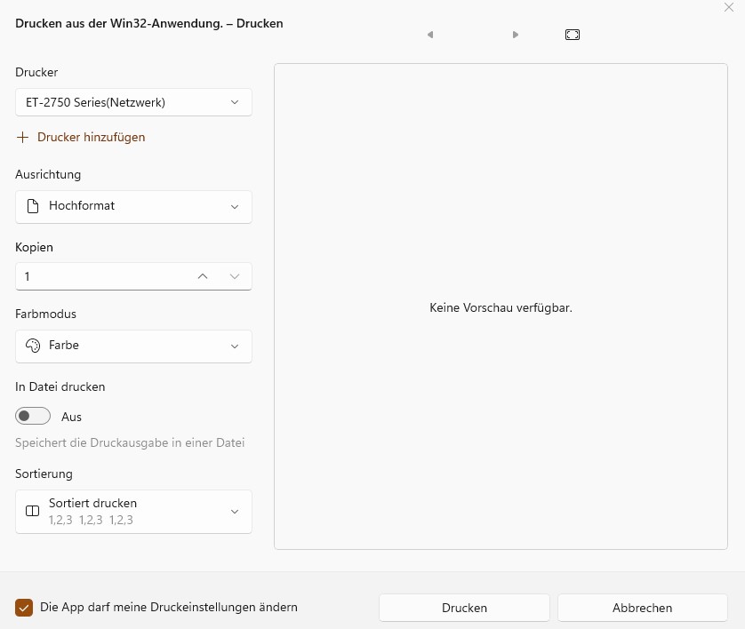 Je nach Drucker und Betriebssystem sieht der Druckdialog anders aus.