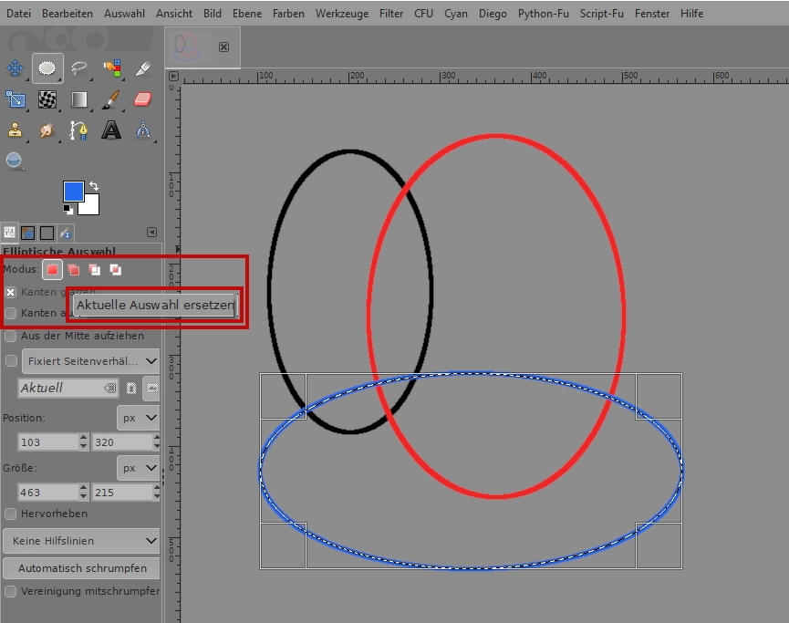 ich hab in aller Regel dann das folgende Verhalten - nach dem "Auswahl nachziehen" Kommando - ist oft dann die Kreislinie gut konturiert - die