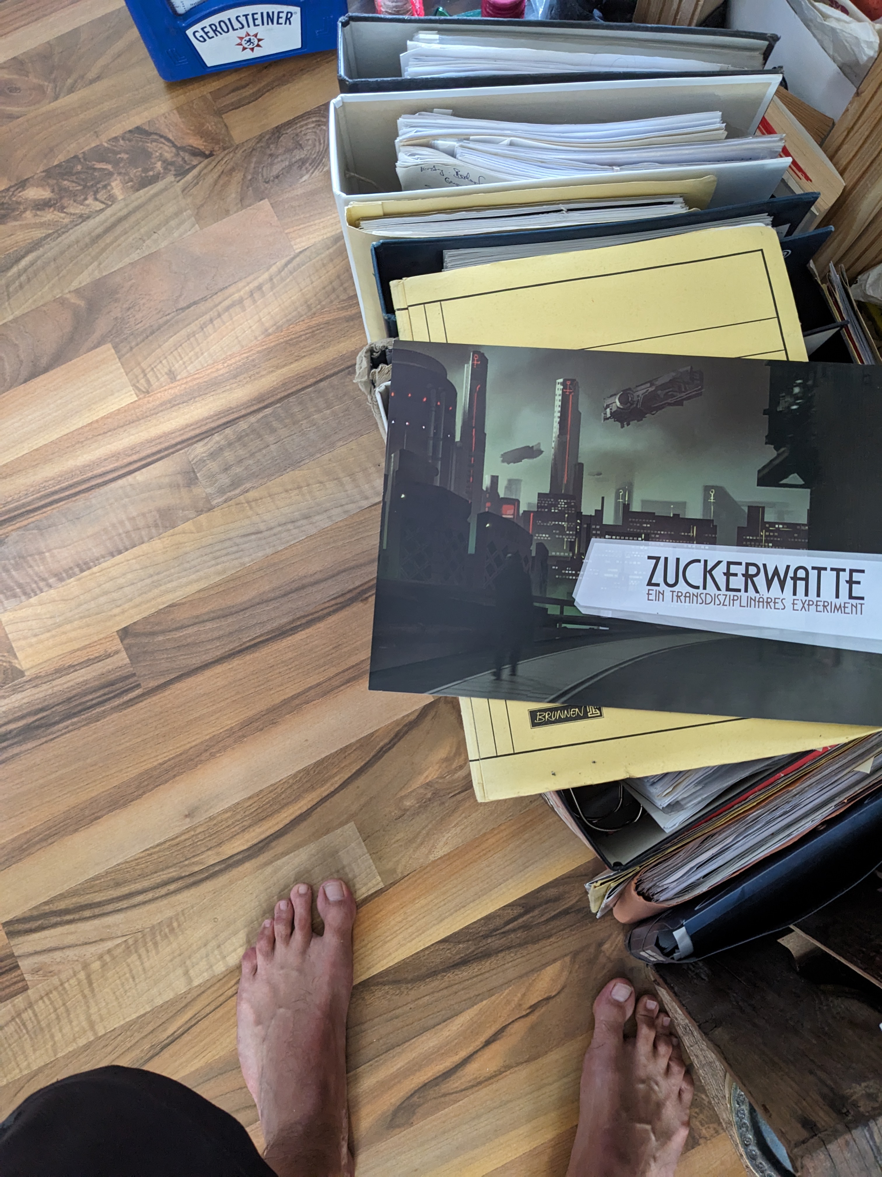 Hier von der Feder eines Kollegen, wir wollte' da mal soe Musikvideo drehe vor Jaaaahre. Gab dann aber nur ne abgespeckte Version für die Band KONSUMENT, die ich hier eben so empfehlen mag wie Herrn Dawo, der diese etwas düstere Perspektive mit Stift und Tablett aus dem Rechner schälte <3