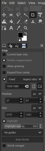 Welche Einstellungen in Gimp sind möglicherweise falsch, dass das Bild nicht im richtigen AR auf 1920x1080(16:9) ausgeschnitten wird?