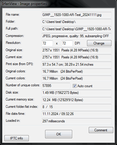 Welche Einstellungen in Gimp sind möglicherweise falsch, dass das Bild nicht im richtigen AR auf 1920x1080(16:9) ausgeschnitten wird?