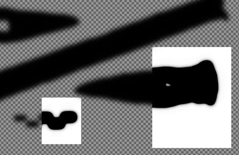 - Eine obere mit Alphakanal, die Schatten von Gegenständen darstellt. Diese wurden mit Hilfe des Gaussschen Weichzeichners weichgezeichnet.