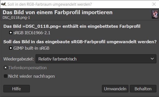 sehr oft, wenn ich ein Bild in Gimp einfüge oder ein Bild über "Öffnen mit Gimp" starte, öffnet sich folgendes Fenster: