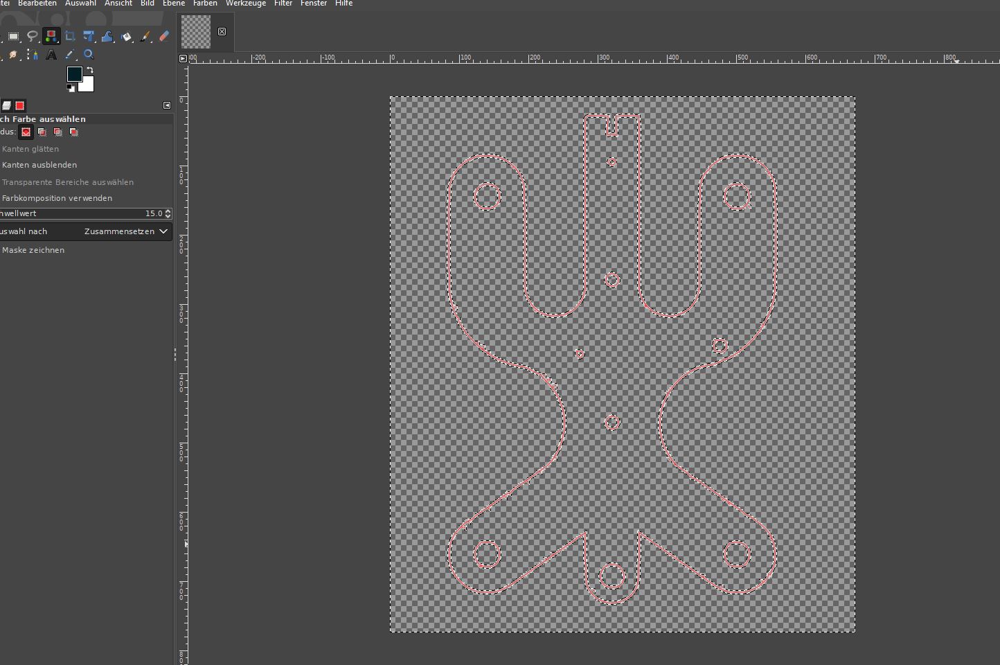 Die Auswahl besteht aber noch. Die rote Linie ist der sichtbar gemachte Pfad, ein Klick auf das Auge im Pfaddialog lässt bestimmt den nachgezogenen Pfad sichtbar werden.