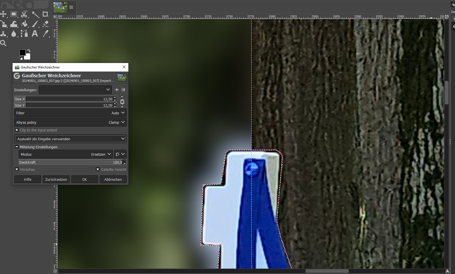 Wer kann mir sagen, wie ich das Weichzeichnen auf die Auswahl anwenden kann, ohne, dass Pixel abseits der Auswahl für die Berechnung mit einbezogen werden?
